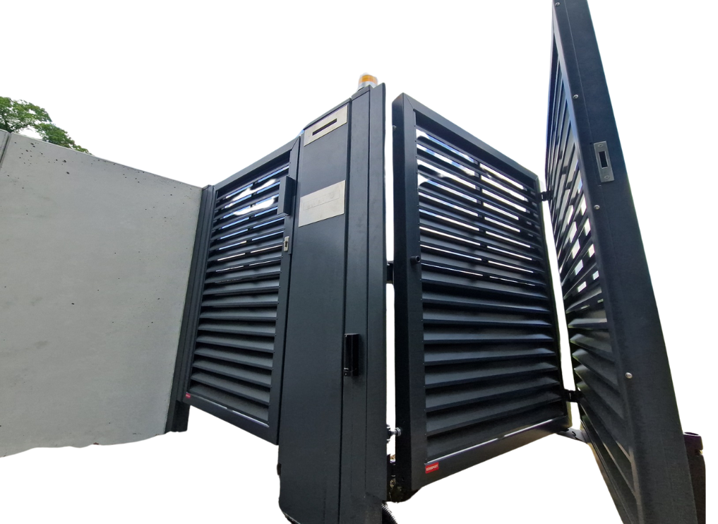 Nowoczesna brama składana harmonijna doskonale sprawdza się ciasnej zabudowie gdzie montaż standardowej bramy jest nie możliwy. Ogrodzeniowa wypełniona przęsłem żaluzja, rama wykonana z profila 80x40 mm nadaje całej konstrukcji spójną całość i doskonałą wytrzymałość. Zabezpieczenie antykorozyjne to ocynk następnie malowany proszkowo w nowoczesnej malarni, zabezpieczenie takie daje komfort użytkowania na wiele lat