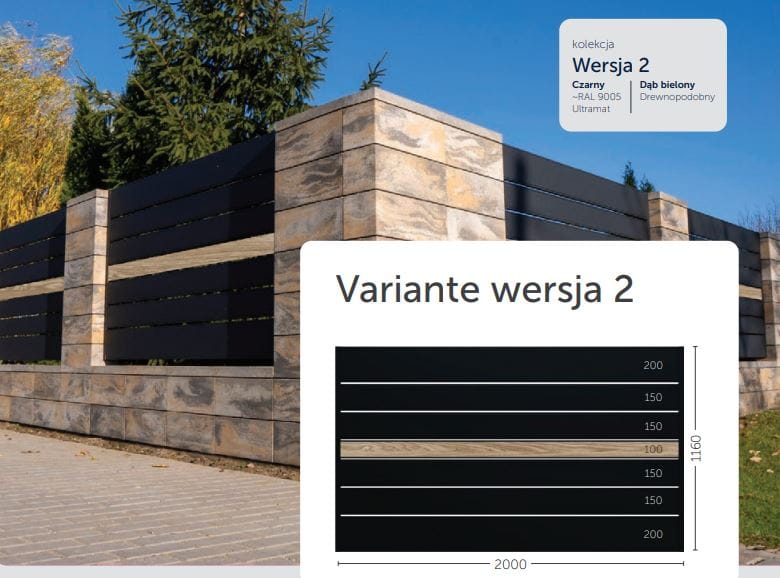 Przęsło poziome Primo Variante 2 1160x2000 mm Czarny 9005 Ultramat