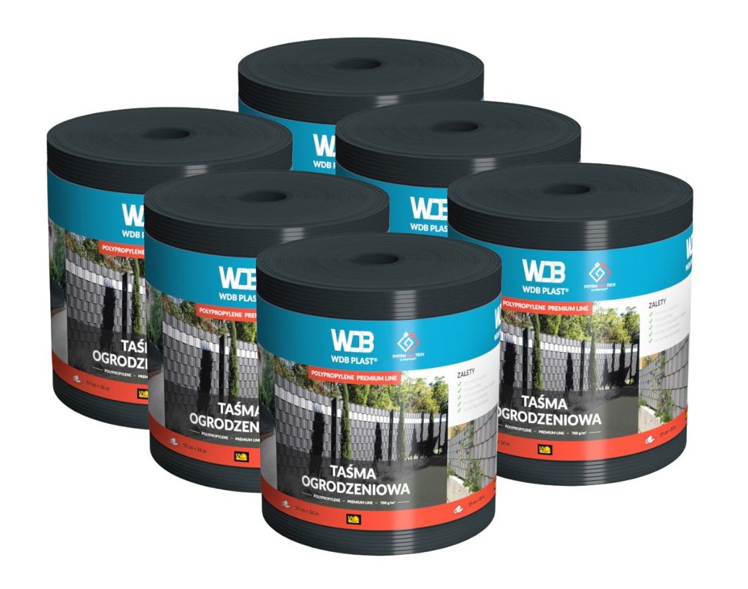 - WAGA: jedna rolka taśmy POLIPROPYLENOWEJ 19 cm x 26 mb waży 3,9 kg, taśmy PVC 1200g/m² - 6,8 kg, przy takiej samej grubości materiału. Wybór taśmy POLIPROPYLENOWEJ oznacza znacznie mniejsze obciążenie paneli ogrodzeniowych.